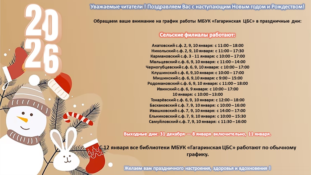7 декабря 2025 года в читальном зале центральной библиотеки для учащихся Гагаринской школы-интерната, средней школы № 2, взрослых пользователей библиотеки в пятый раз прошёл показ короткометражных фильмов о Великой Отечественной войне молодёжного кинофестиваля «Перерыв на кино» в рамках Всероссийской акции, организованной фондом «Мост поколений».