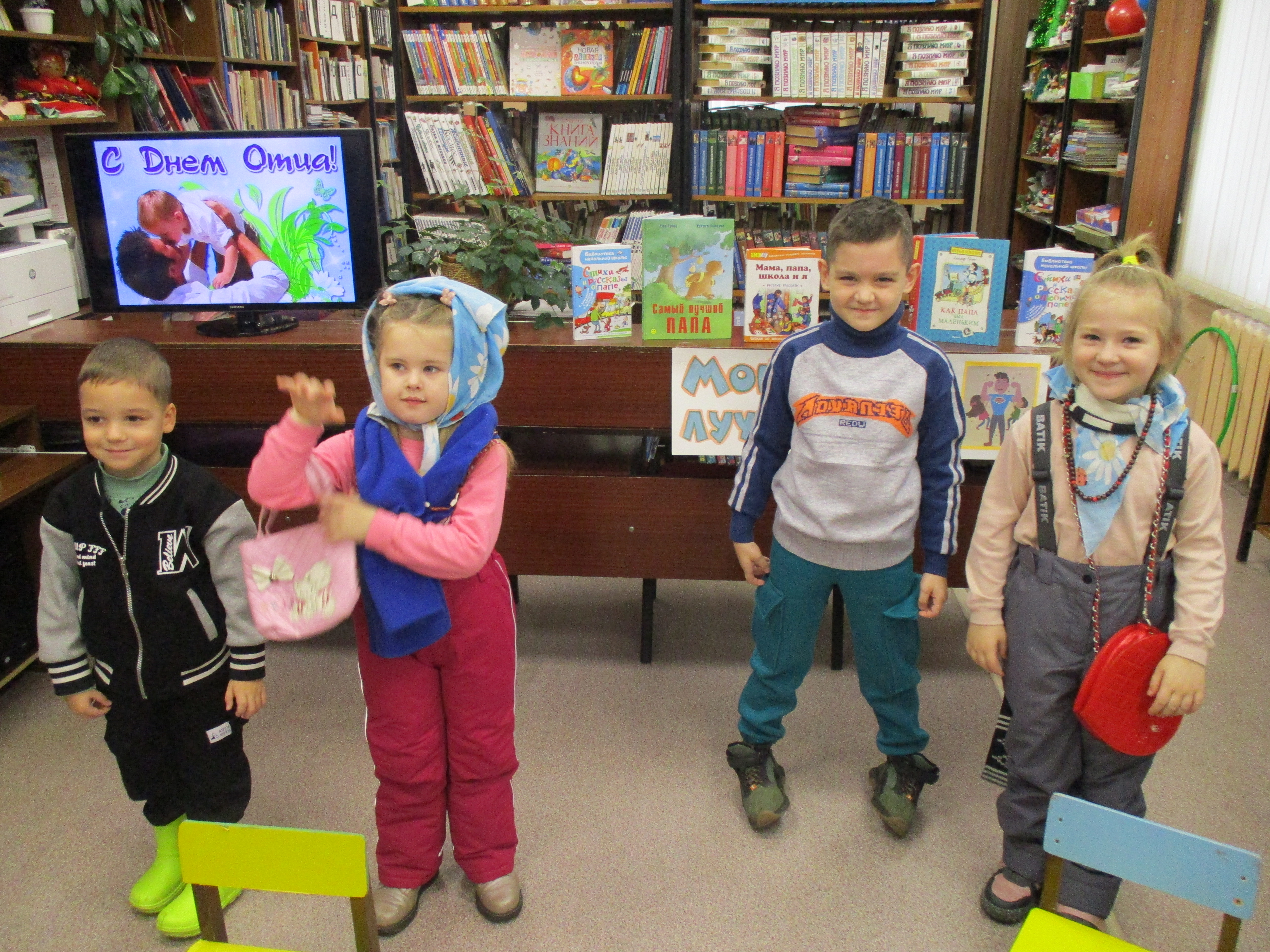Ребята подарили детской библиотеке  красочный плакат «Наши папы», сделанный своими руками.