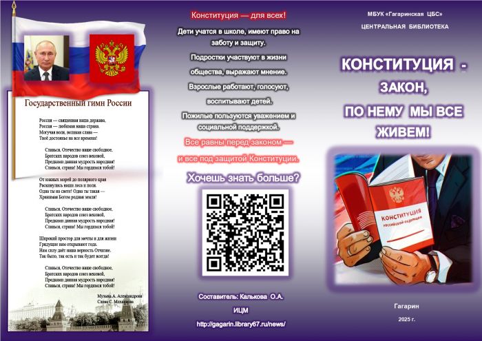 Буклет «Конституция -закон, по нему мы все живём!» 14+
