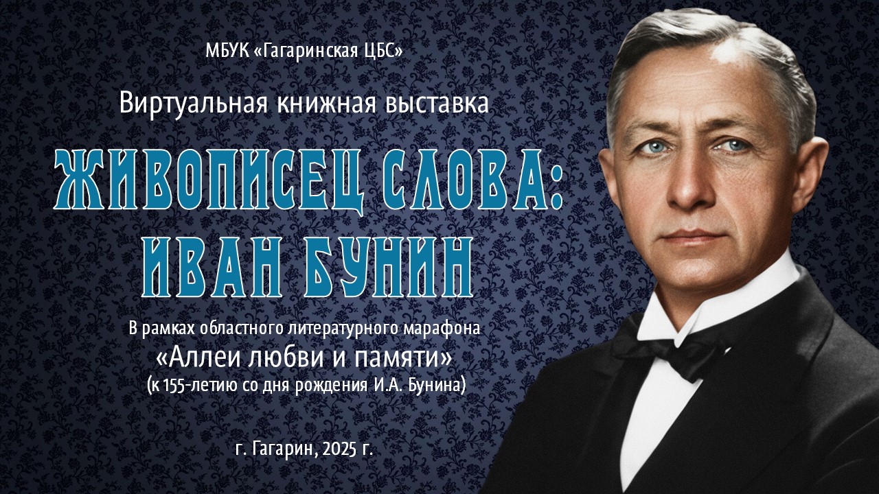 Выставка посвящена творчеству первого русского нобелевского лауреата по литературе — Ивана Алексеевича Бунина. Она помогает увидеть Бунина не только как классика, но и как тонкого наблюдателя человеческой души, мастера языка и хранителя русской культуры за рубежом.