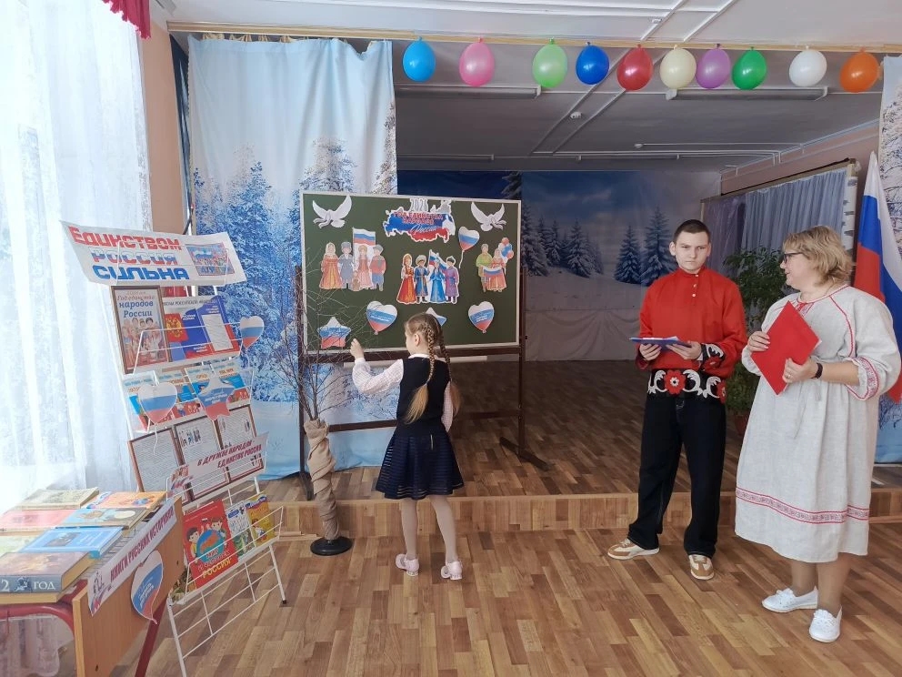 12 января 2026 года заведующий Родомановским сельским филиалом МБУК «Гагаринская ЦБС» приняла участие  в содружестве с Родомановской средней школой в проведении тематического часа «Наш общий дом – Россия!», посвящённом открытию Года единства народов России. На мероприятие были приглашены учащиеся 1-10 классов. Школьники узнали, с какой целью этот год объявлен годом единства народов России, его задачи, планы, мероприятия, новые праздники этого года. Наша страна – это огромный, многонациональный дом, где каждый народ, каждая культура – это бесценная часть общего целого. Ребята приняли участие в акции «Дерево России», в их  исполнении  прозвучали стихи и песни о родной стране. Библиотекарь напомнила ребятам, что единство — это не когда мы все одинаковые. Это когда мы все разные, но вместе. Только вместе, в единстве и взаимопонимании, мы сможем преодолеть любые трудности и построить сильное, процветающее будущее для всех. В завершении мероприятия библиотекарь  познакомила юных читателей с книжно – иллюстративной выставкой «Единством Россия сильна». На выставке были представлена литература об истории России, книги о государственных символах, традициях и праздниках России, о многочисленных народах её населяющих, знакомящие с их обычаями, традициями, самобытностью.