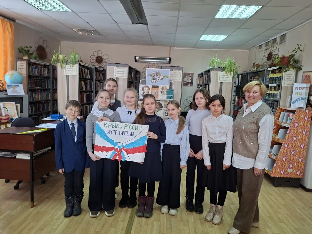 18 марта 2026 года в Родомановском сельском филиале был проведен познавательный час «Крымская весна: Путь домой». Гостями библиотеки стали учащиеся 7 класса Родомановской школы с классным руководителем Изерхановой Е.О. Этот час был посвящен событиям Крымской весны – времени, когда жители полуострова ясно и недвусмысленно заявили о своем желании вернуться в состав России.