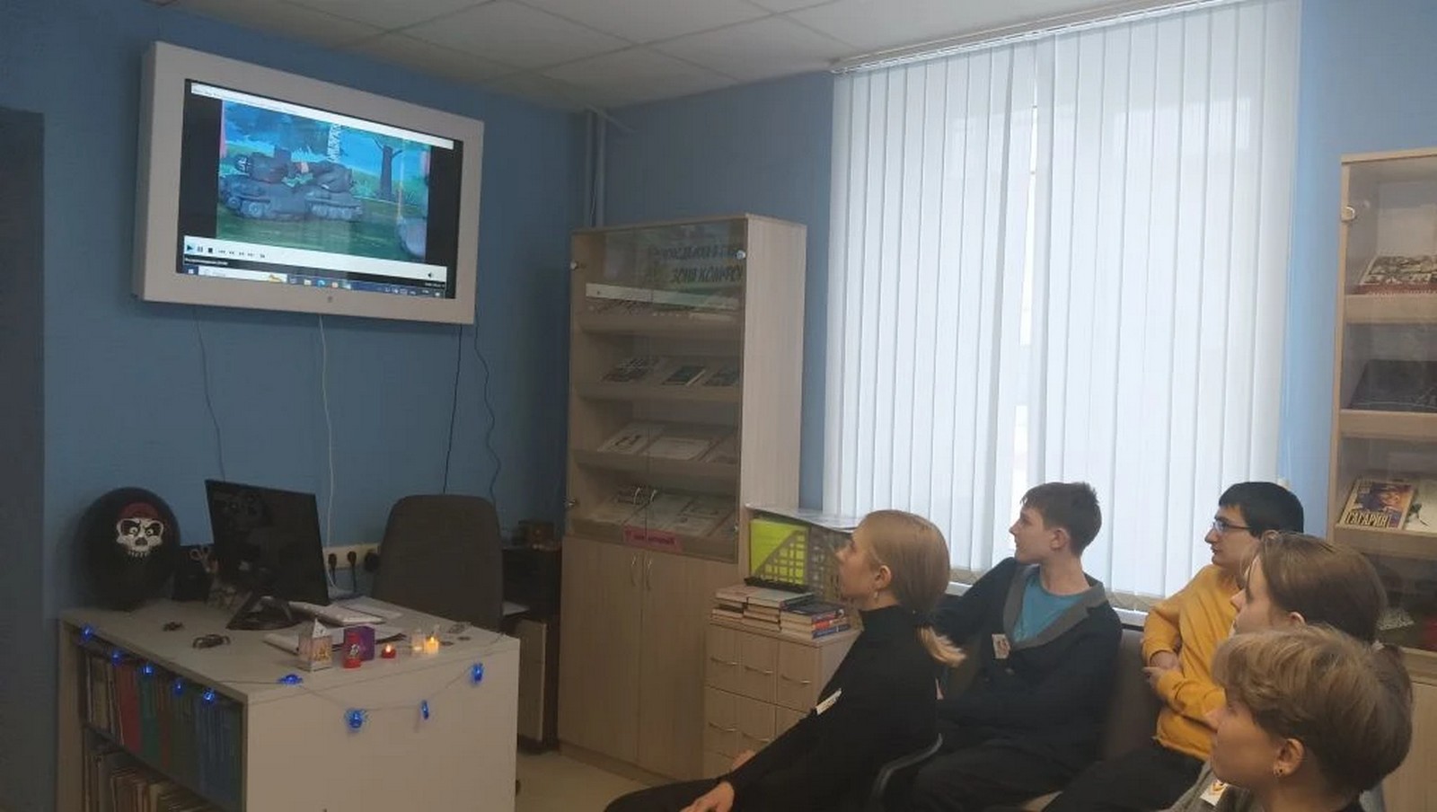 В завершение все с интересом посмотрели и обсудили мультфильм «Ужасы войны», созданный Арсением Галкинсом, новым членом клуба.