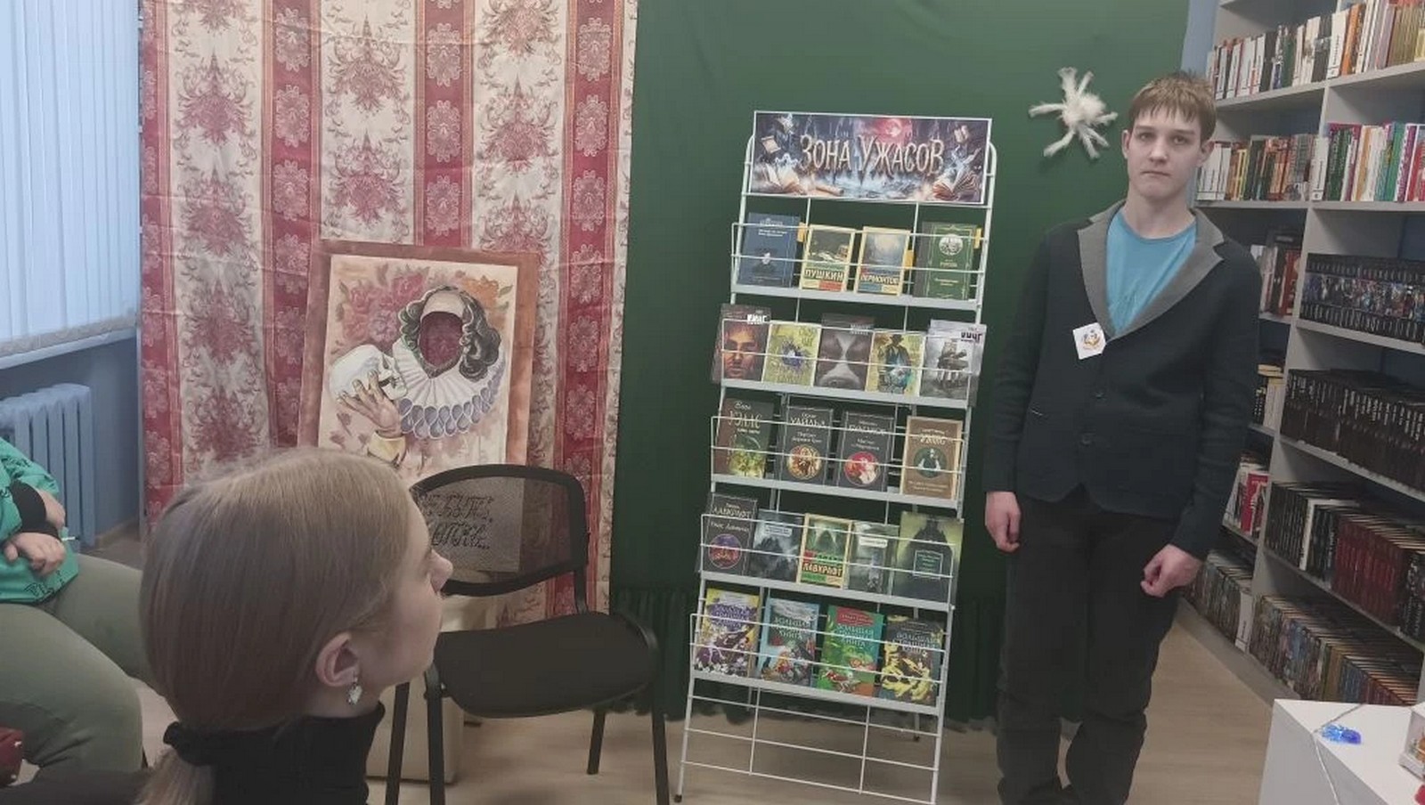 19 февраля 2026 года на юношеской кафедре центральной библиотеки состоялась очередная встреча участников читательского клуба «Молодёжка». Прошла она в необычном формате - Хоррор-пати «Тени между страницами» и носила литературно-познавательный характер. В содержание вечера были также включены игровые и творческие моменты. Оформление пространства, световые и звуковые эффекты создало необходимую атмосферу и эмоциональный настрой в соответствии с темой вечеринки.