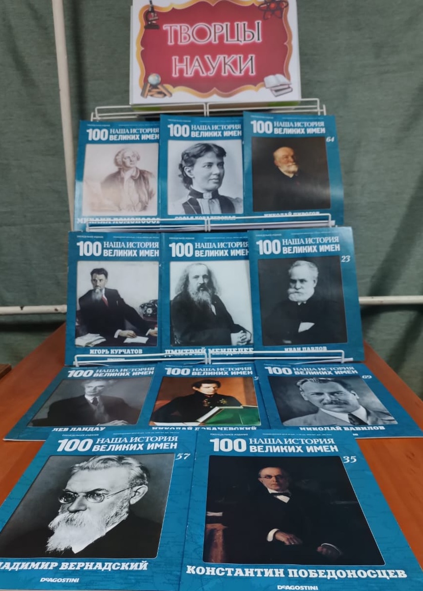 Оформлена выставка-знакомство «Творцы науки». 6+