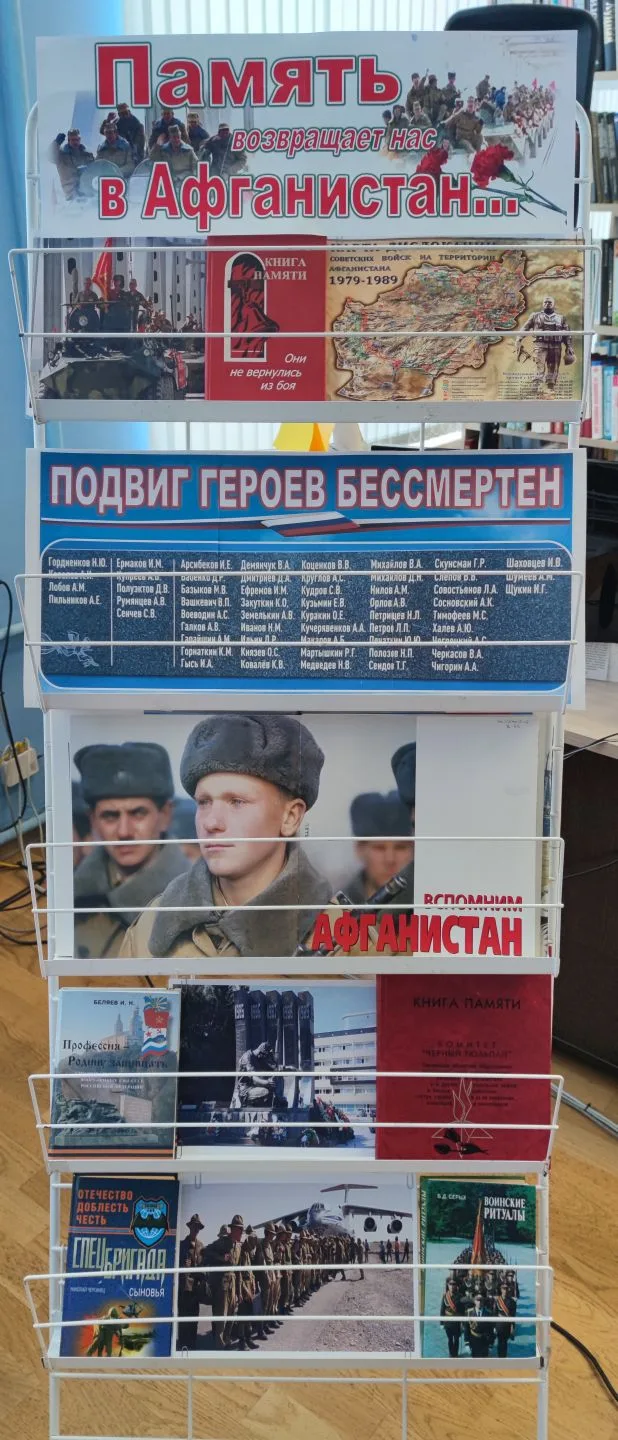 К мероприятию была подготовлена книжная выставка «Память возвращает нас в Афганистан».