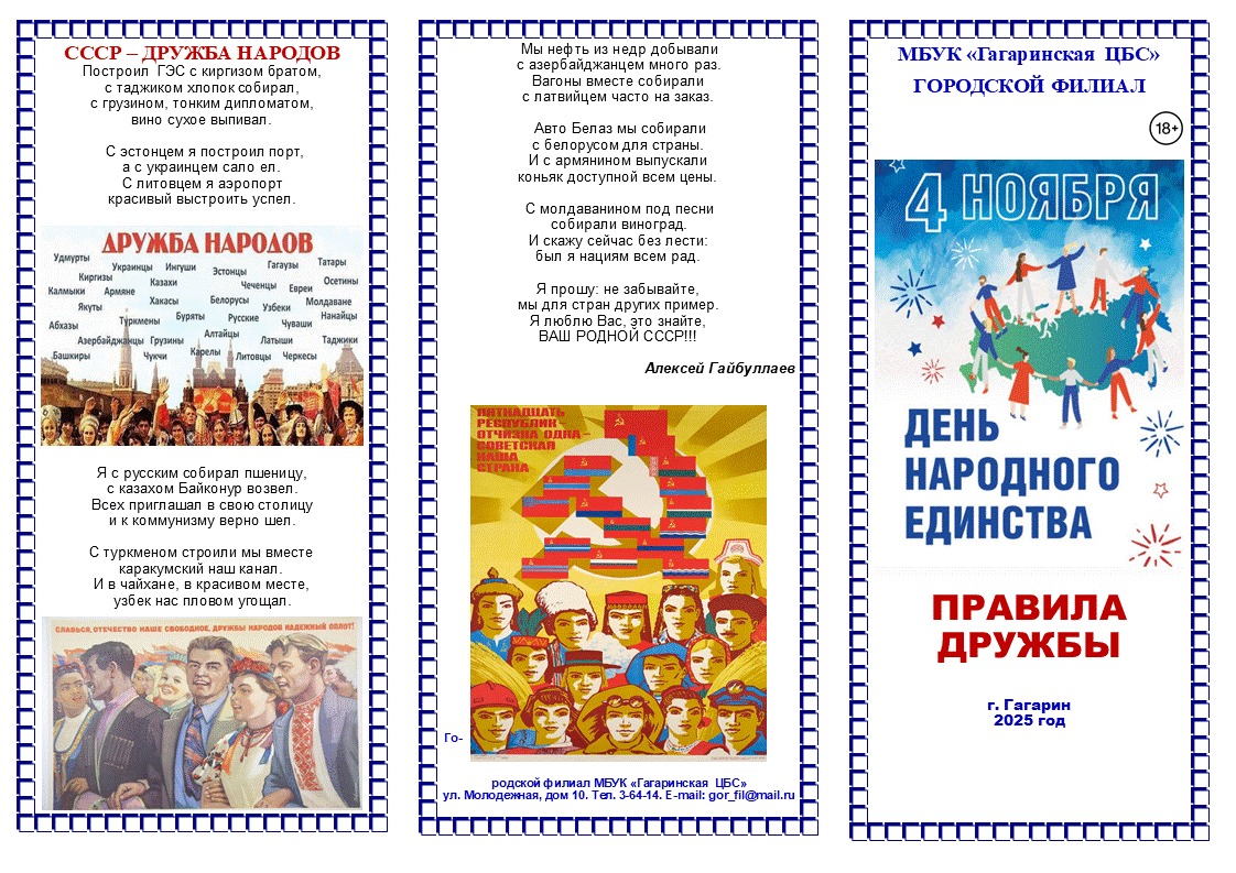 1 ноября 2025 года, в преддверии Дня народного единства, в Городском филиале МБУК «Гагаринская ЦБС» прошла народная акция «Давайте жить дружно!».