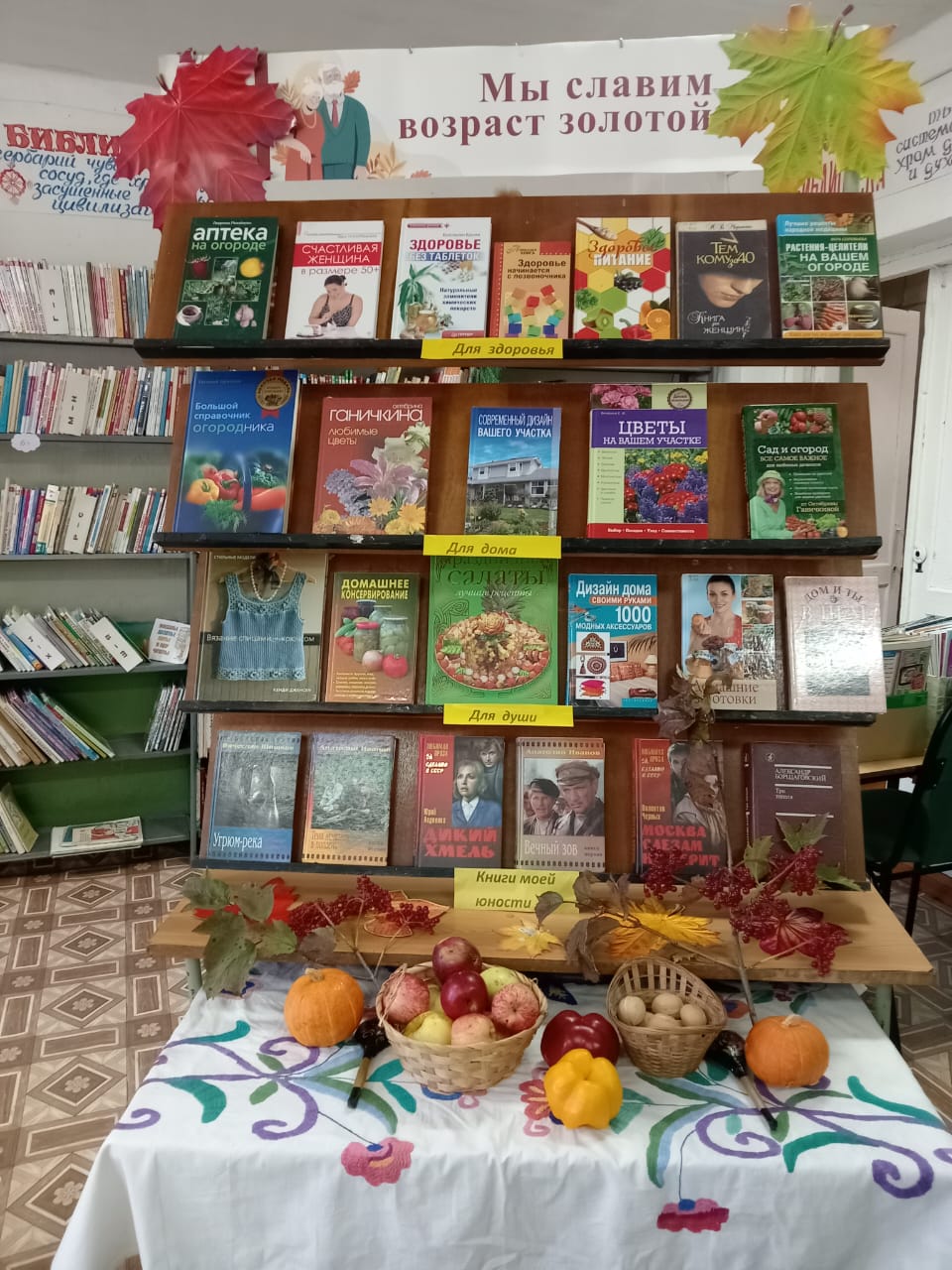 Осенний календарь богат праздничными днями, вот и в первый день октября отмечается международный день пожилых людей. В Токаревской сельском филиале  1 октября прошла осенняя гостиная «От всей души, с поклоном и любовью», проведенная совместно с работниками Дома Культуры. В уютной и доброй атмосфере гостей принимала заведующая филиалом Лазуткина Л.Е. Теплые слова , поздравления и благодарности прозвучали для гостей торжества. С приветствием и осенними подарками пришла в гости сама «Осень». В этот день было все; песни молодости, душевный разговор, добрые воспоминания, общие игры и танцы. Гости много общались, обменивались мнениями, пели песни прошлых лет, рассказывали забавные случаи из своей жизни. В библиотеке была оформлена книжная выставка- посвящение « Мы славим возраст золотой», где вниманию гостей была представлена литература для здоровья, для дома, для души. Гости долго не расходились, праздник всем пришелся по душе!