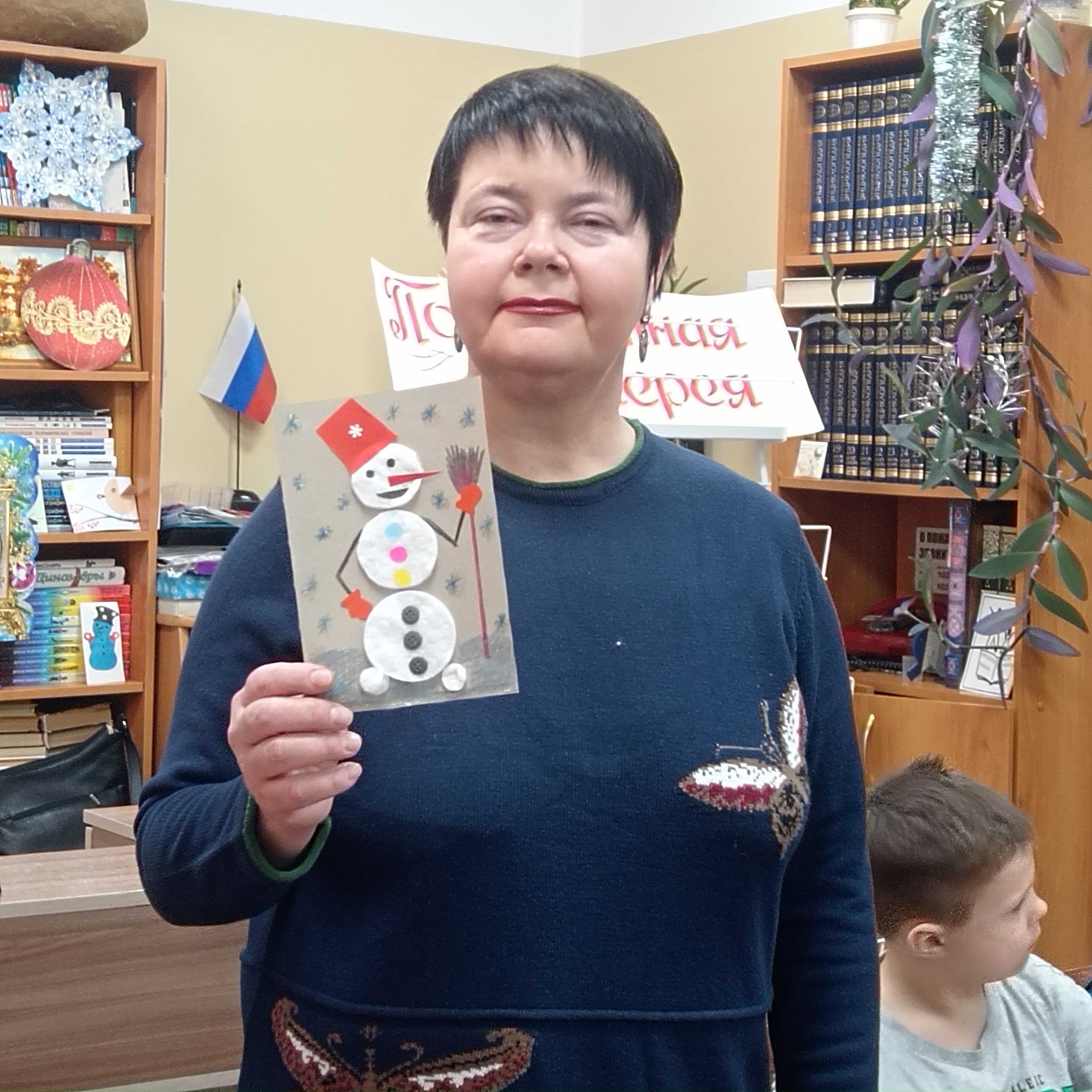 Малыши под руководством сотрудников библиотеки изготовили поздравительные открытки со снеговиками, которые получились очень колоритными: в красочных разноцветных ведерках, украшенных ажурными снежинками, с яркими варежками, нарядными пуговицами и неповторимыми носами-морковками. Снеговики «не скучали»: они выступали в роли дворников, расчищающих сугробы в эту снежную пору. У ребят получилось настоящее снеговик-шоу!