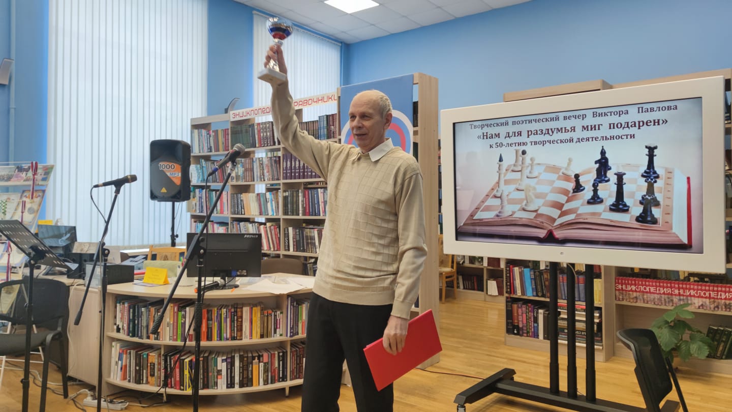6 февраля в читальном зале центральной библиотеки состоялось очередное заседание клуба творческих людей «Вдохновение» — творческий вечер поэта Виктора Александровича Павлова, приуроченный к 50-летию его литературной деятельности. Мероприятие прошло под названием «Нам для раздумья миг подарен…».
