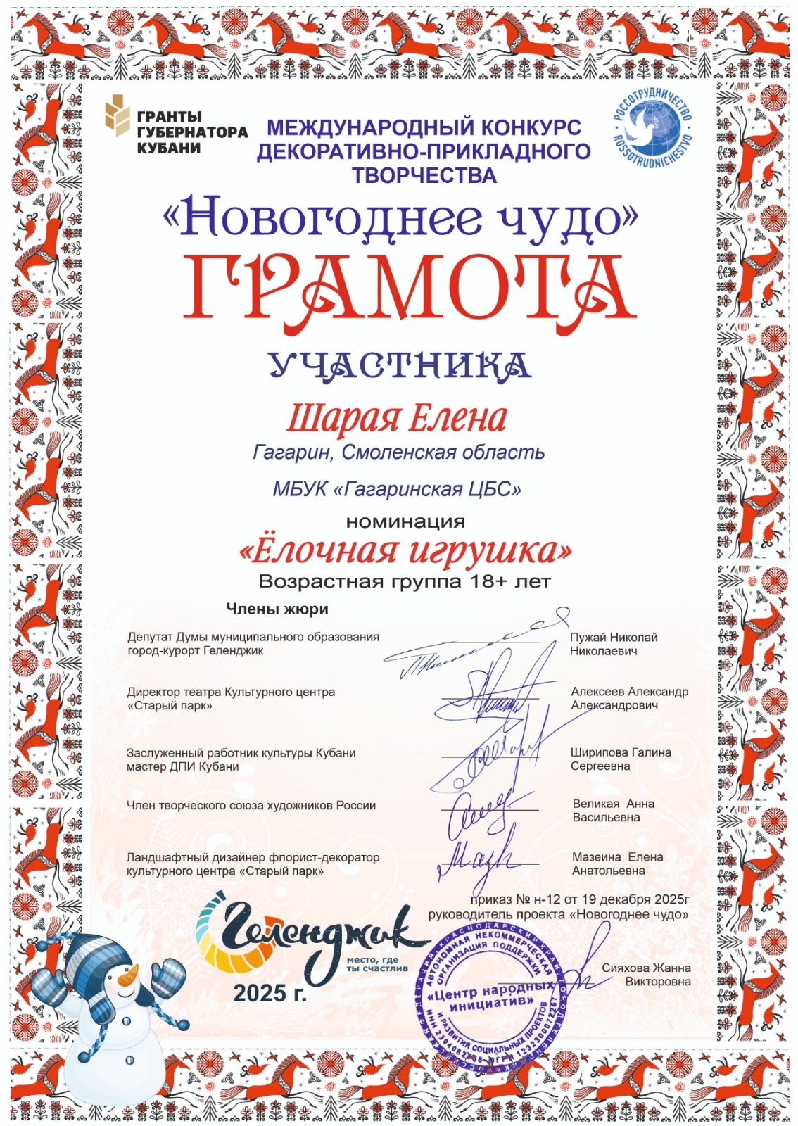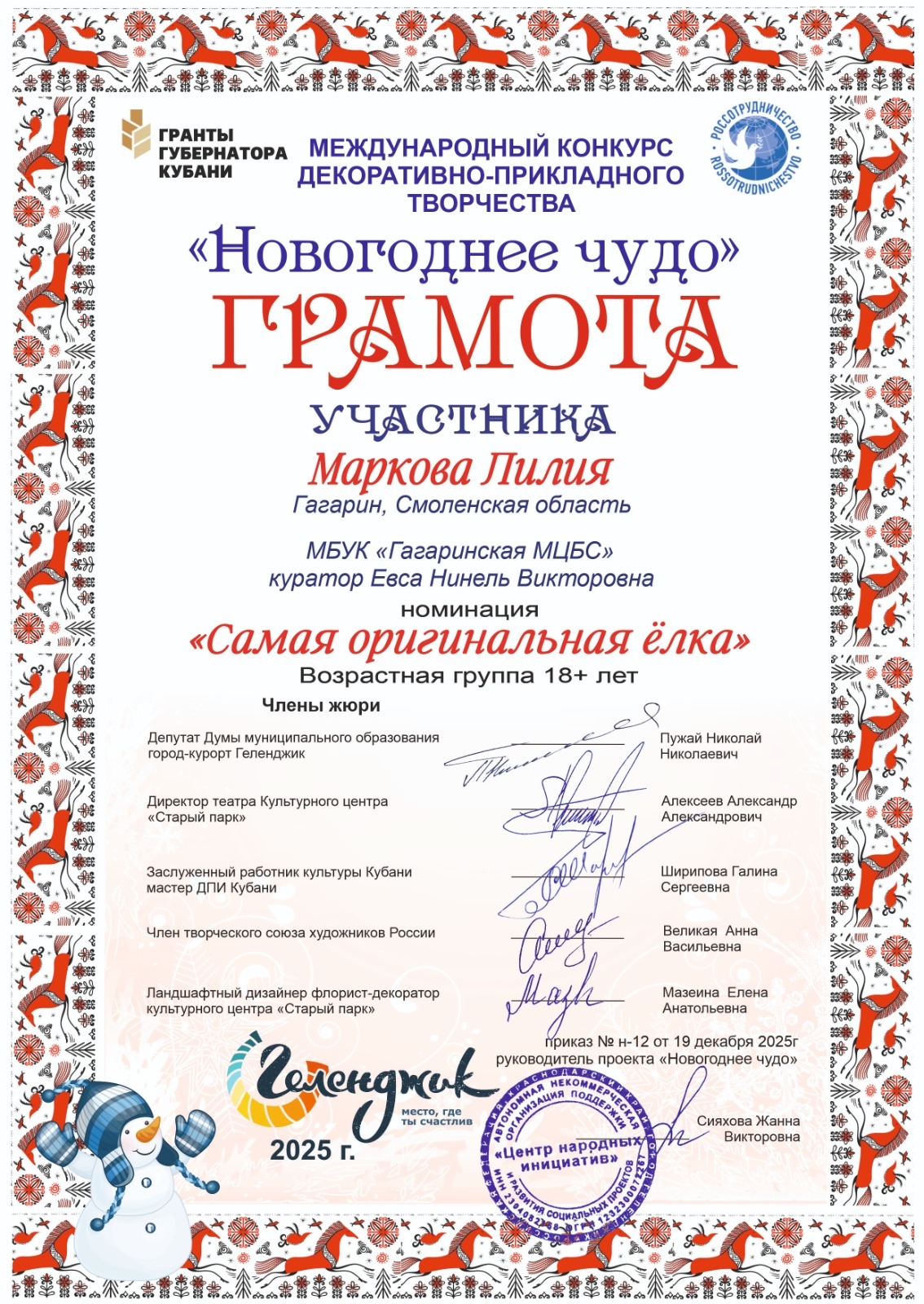 Участие в международном конкурсе декоративно-прикладного творчества «Новогоднее чудо» 18+