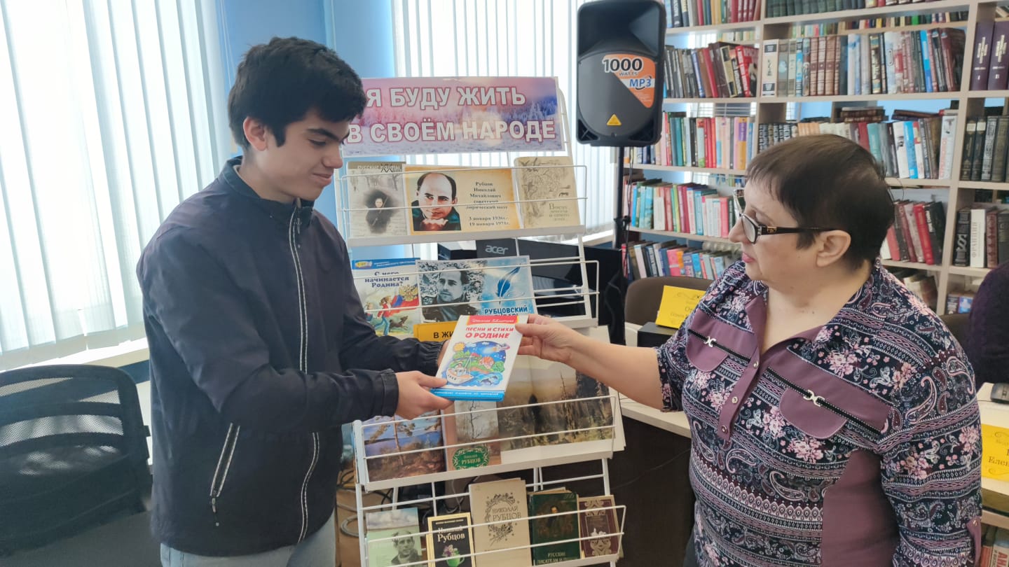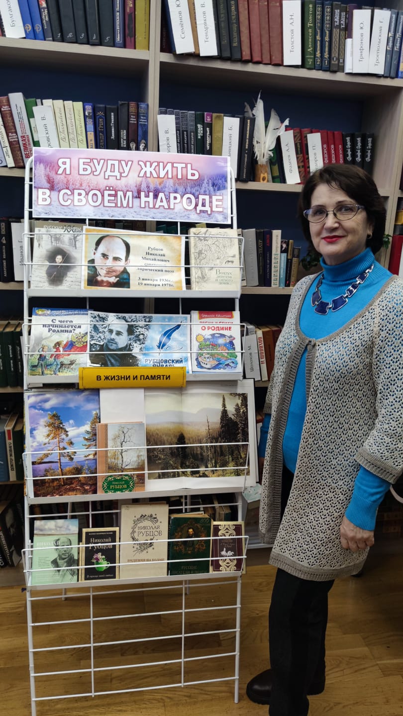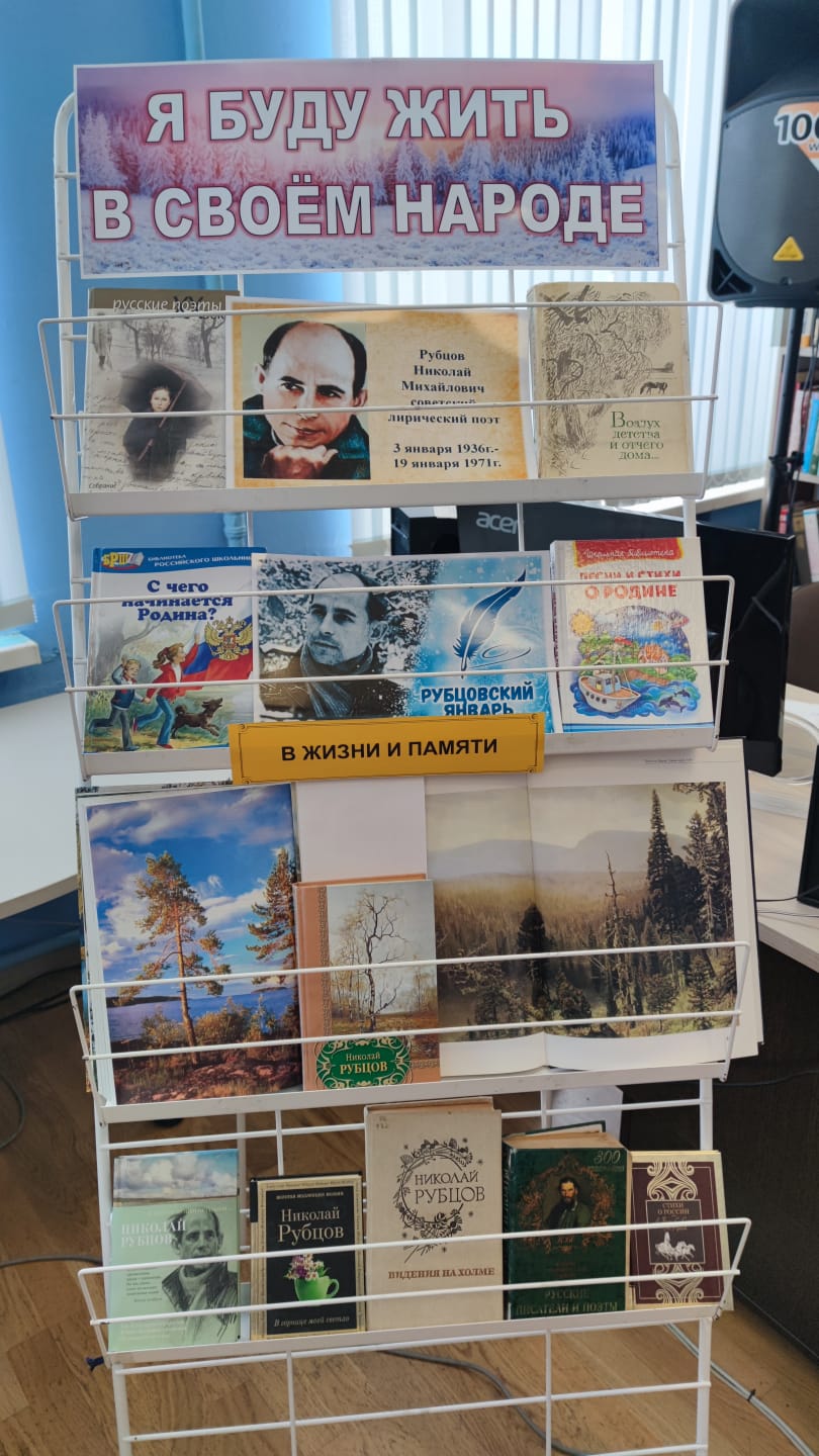 15 января 2026 года в читальном зале центральной библиотеки к 90-летию со дня рождения Н.М.Рубцова была оформлена выставка – юбилей «Я буду жить в своём народе» .